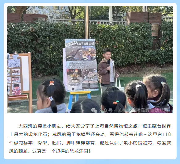 幼儿则以“童话”回响精彩一一大班孩子结合参观苏州丝绸博物馆、苏州博物馆的真实体验,勇敢站上舞台,用纯真言语分享所见所感,在讲述中深化对姑苏文化的理解与认同。