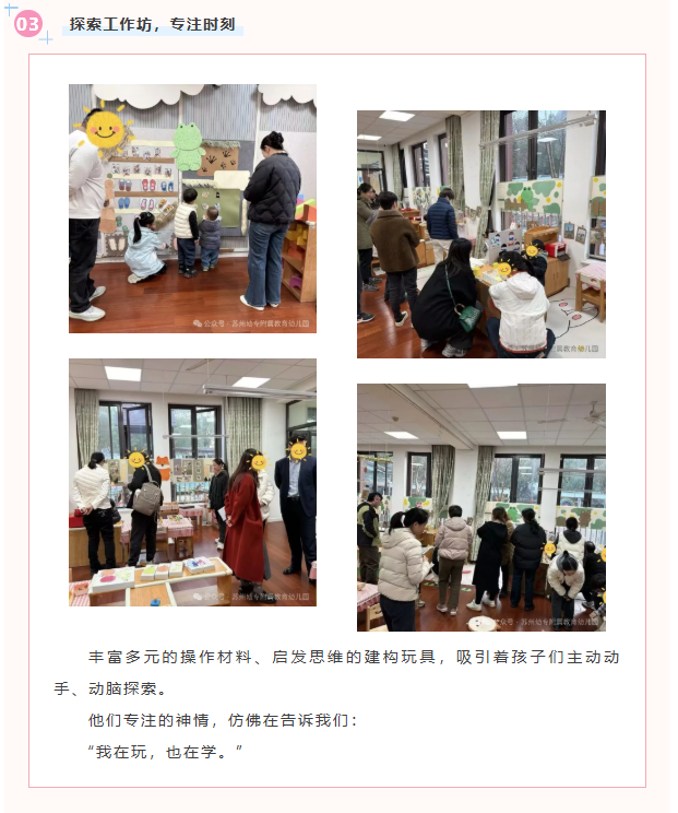 冬日之约,温暖收官 | 教育幼儿园开放日,一场看见成长的亲子之旅 来源: 发布时间:2025-12-18 23:27:21 浏览次数: 次 【字体:小 大】 冬日午后,暖阳轻柔地洒在幼儿园的每一个角落。阵阵清脆的笑声、专注探索的眼神、亲密无间的拥抱……这一切,共同构成了12月17日亲子入园体验开放日最动人的画面。我们与众多家庭相约苏州幼专附属教育幼儿园,在专业与爱的交融中,共同见证了一场温暖、有趣且有意义的成长陪伴时光。活动现场·那些值得珍藏的瞬间 分享到: 【打印正文】