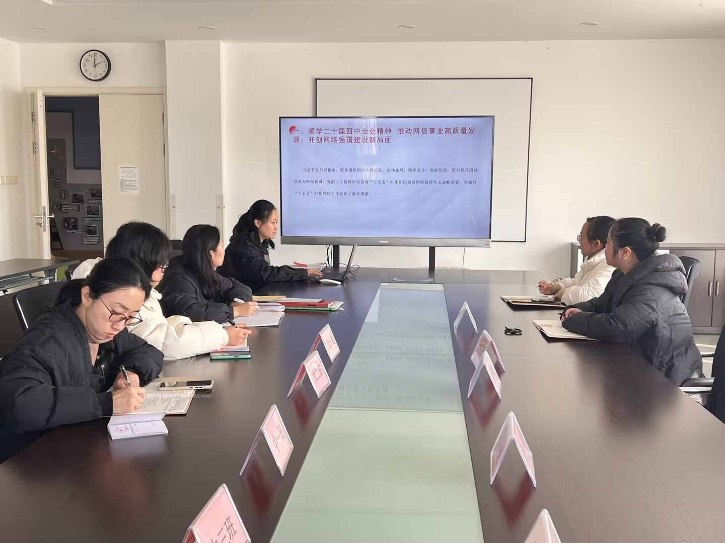 活动伊始,支部组织委员带领全体党员聚焦党的二十届四中全会精神进行专题学习,重点领学了关于“加快建设网络强国”的战略部署。会议强调,要深刻领会全会精神,特别是习近平总书记关于发展网信事业的重要论述,不仅要关注宏观战略,更要思考如何将“安全”、“创新”、“治理”等关键词融入教育场景,守好幼儿园的网络与信息阵地,为幼儿成长营造清朗空间。